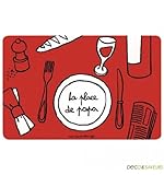 Set de table Derrière la porte apporte une touche d'humour au petit déjeuner ou au repas familial. En complétant ce set de table "La place de papa" avec les sets de table de la même gamme, chaque membre de la famille a sa propre place. La marque Derrière la porte crée des produits pour la maison originaux, drôles et fonctionnels. Les nombreuses boîtes en métal de rangement pour la cuisine, la salle de bain ou la chambre sont tout simplement irrésistibles. Les sacs de course cabas transforment la corvée des courses en un pur moment de joie et d'humour. Derrière la porte vous offre donc un ensemble d'objets déco ludiques et fonctionnels pour faciliter et égayer votre quotidien.