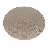 Le set de table rond Galaxie est à 85% en polypropène et 15% en polyester. Diamètre 38 cm. Couleur taupe.